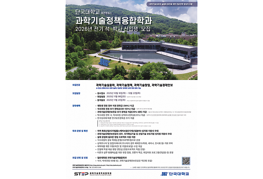 단국대학교 과학기술정책융합학과 2026년 전기 석·박사 신입생 입학 모집 안내
